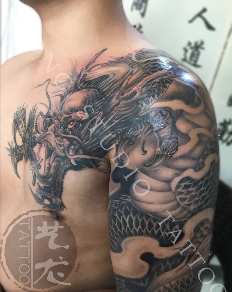 当前位置: 首页 >广东省中山市纹身店-艺龙刺青(东凤总店)纹身图案>过肩龙纹身图片_成品肩部胸部臀部手臂传统鬼神纹身图案