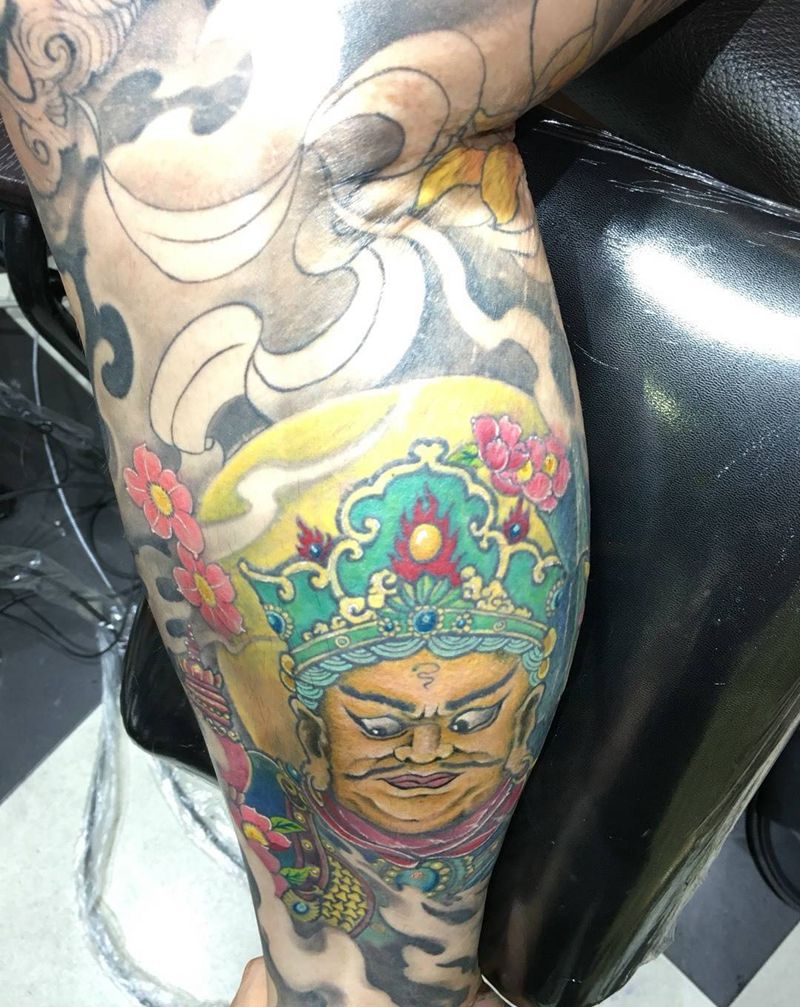• T网红王老大花腿龙纹身图片_腿部新传统纹身图案