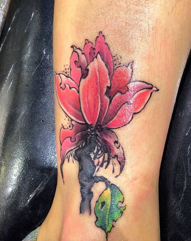• T网红王老大花腿龙纹身图片_腿部新传统纹身图案