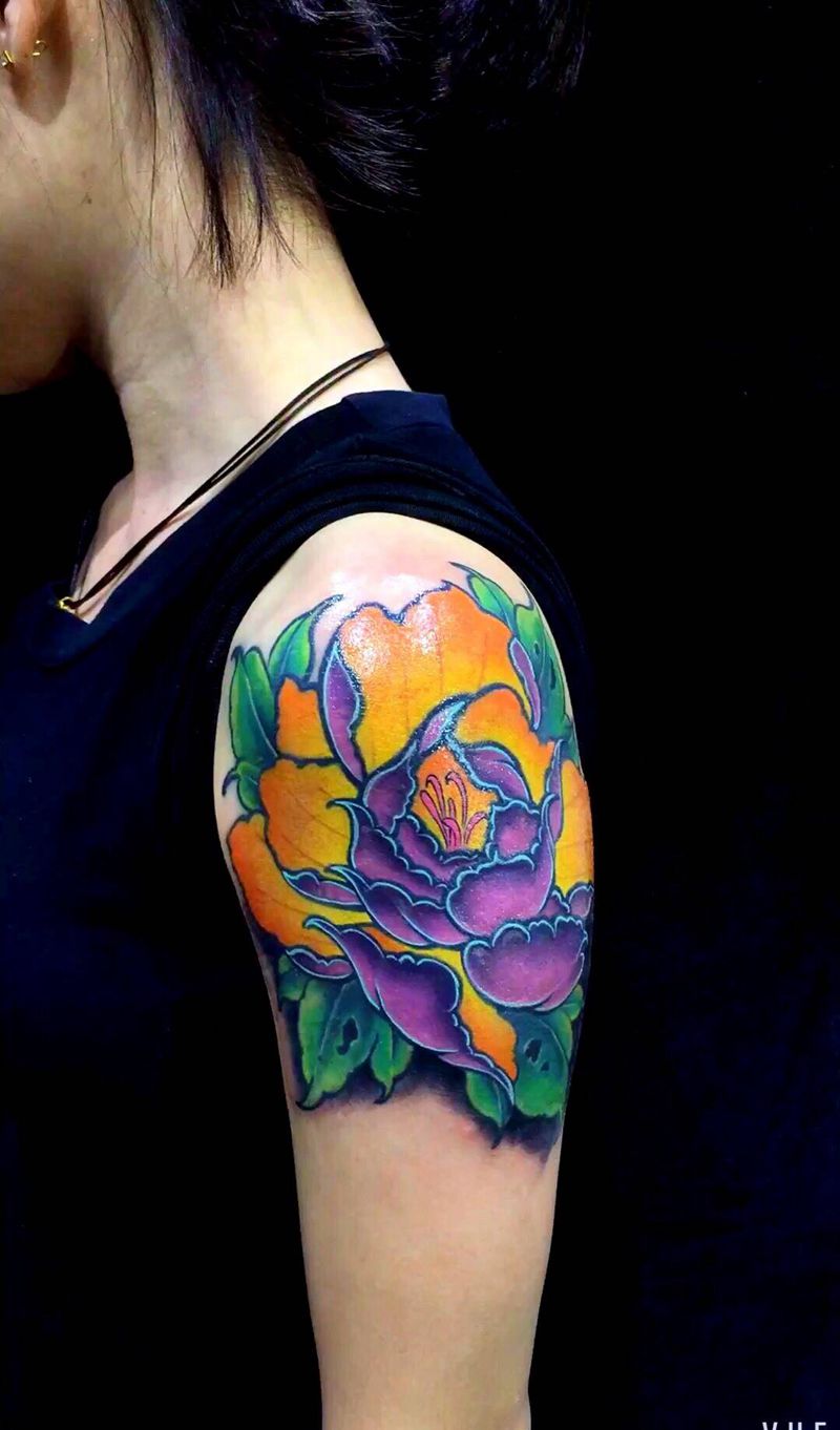 • 女性大花胸纹身_43张霸气漂亮的女性大花胸纹身图案作品