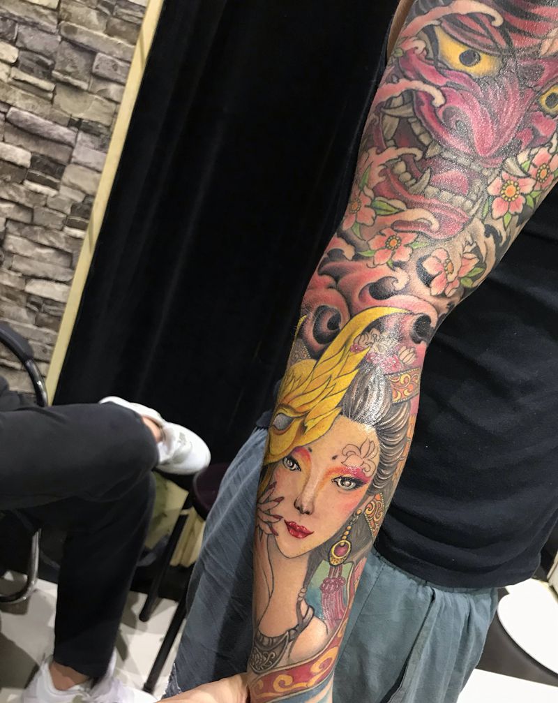 当前位置: 首页 >广东省中山市纹身店-艺龙刺青(东凤总店)纹身图案>般若与艺妓纹身图片_手臂纹身图案