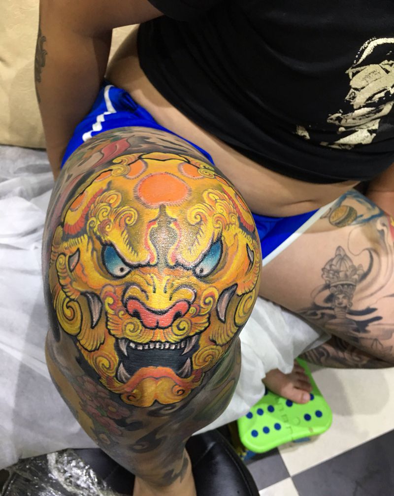 当前位置: 首页 >广东省中山市纹身店-艺龙刺青(东凤总店)纹身图案>(未完成的花腿)黃金狮子头纹身图片_腿部纹身图案