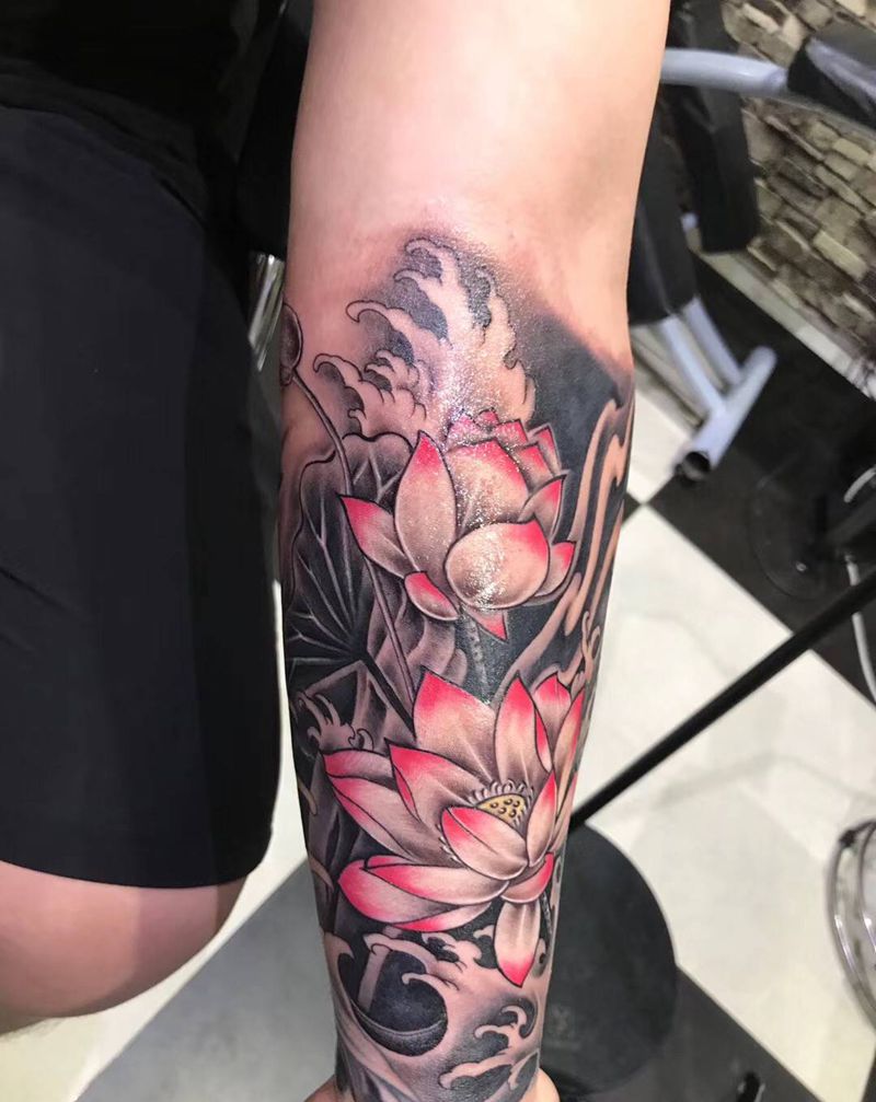 莲花纹身图片_手臂新传统纹身图案