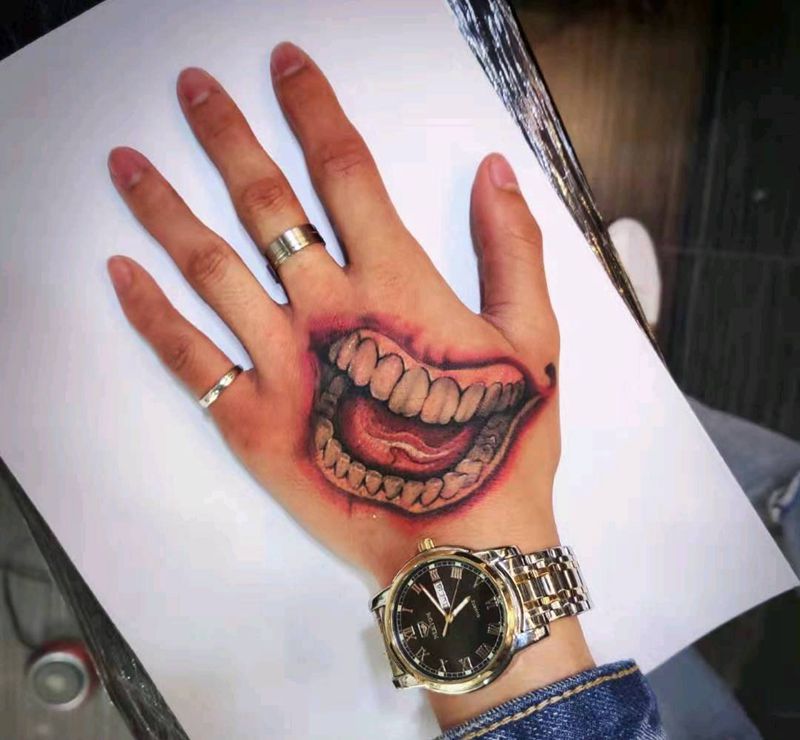 嘴巴纹身图片_手部新传统纹身图案