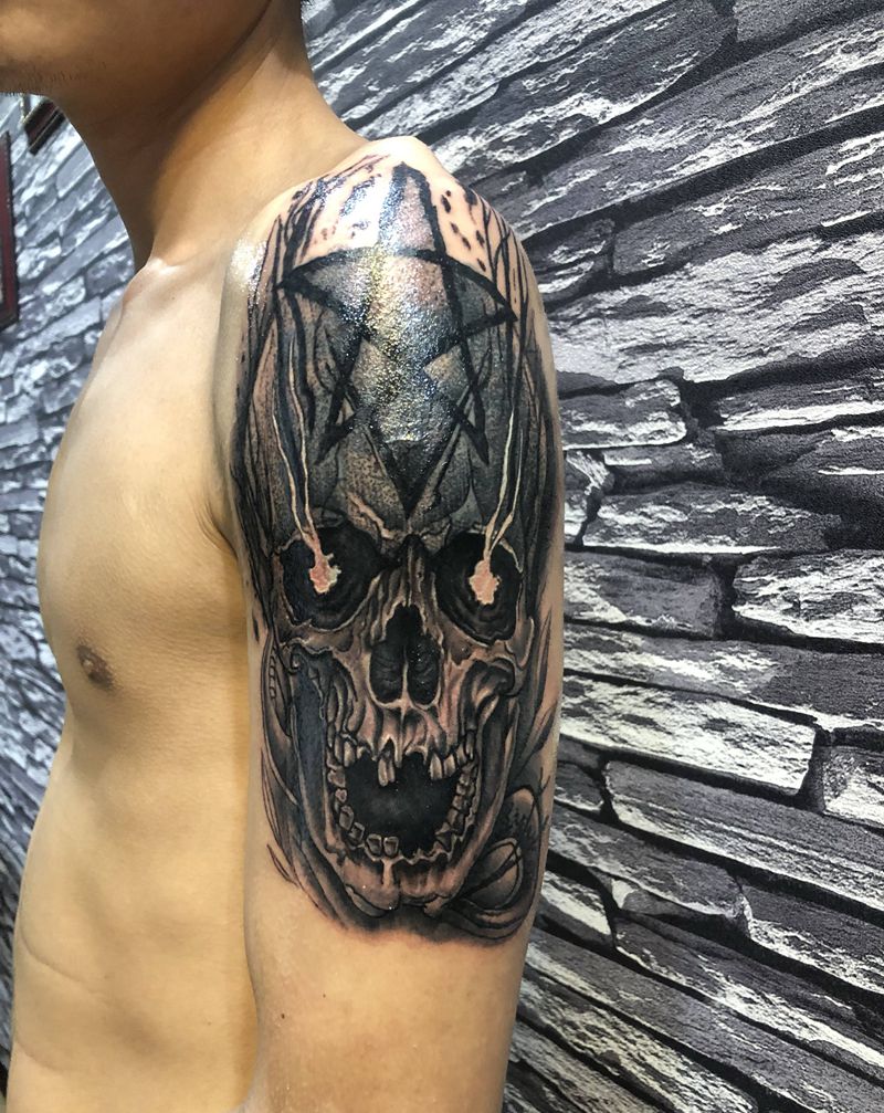 当前位置: 首页 >广东省中山市纹身店-吉刺青纹身图案>暗黑骷髅遮盖纹身图片_手部手臂点刺纹身图案