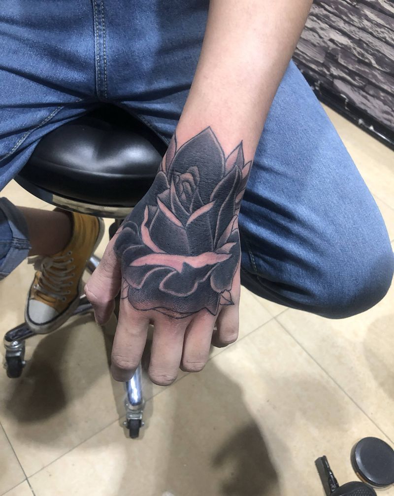 暗黑玫瑰满背纹身图片_手部Old School纹身图案