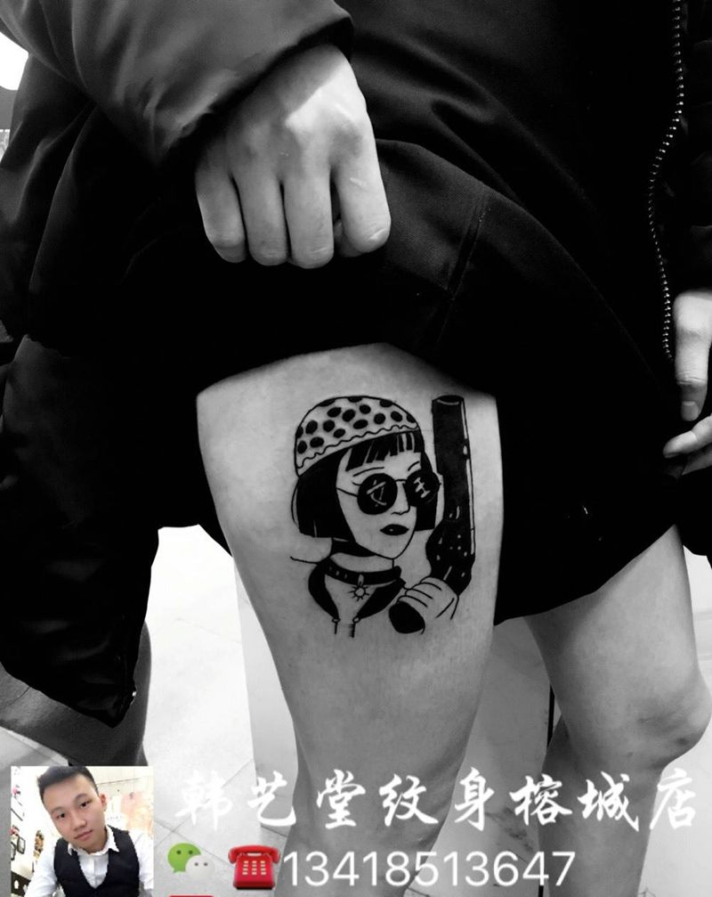 当前位置: 首页 >广东省揭阳市纹身店-恩刺青纹身纹身图案>女王枪妹纹身图片_成品腿部清新图腾人物纹身图案
