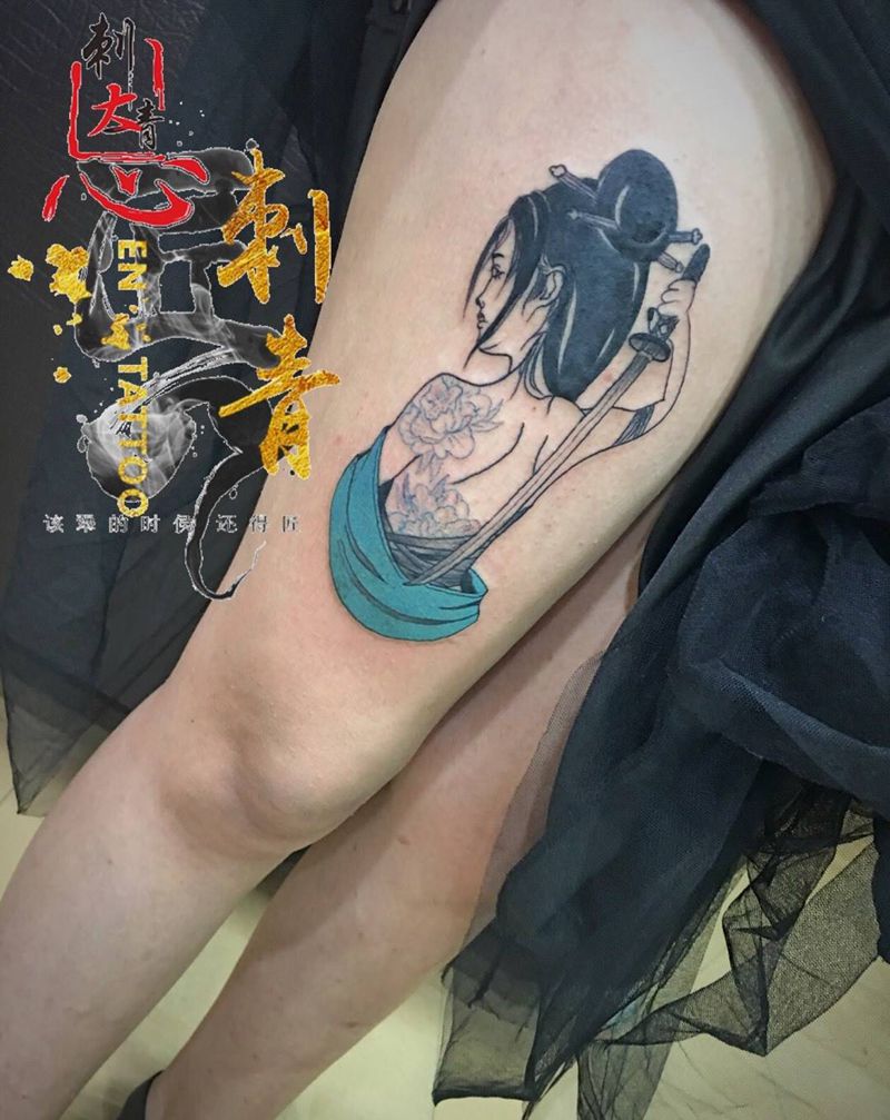 当前位置: 首页 >广东省揭阳市纹身店-恩刺青纹身纹身图案>武士姬纹身图片_腿部Old School纹身图案