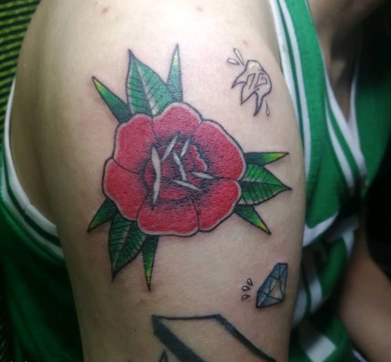 当前位置: 首页 >广西南宁市纹身店-上高铺31号文身馆纹身图案>花纹身图片_手部肩部Old School纹身图案