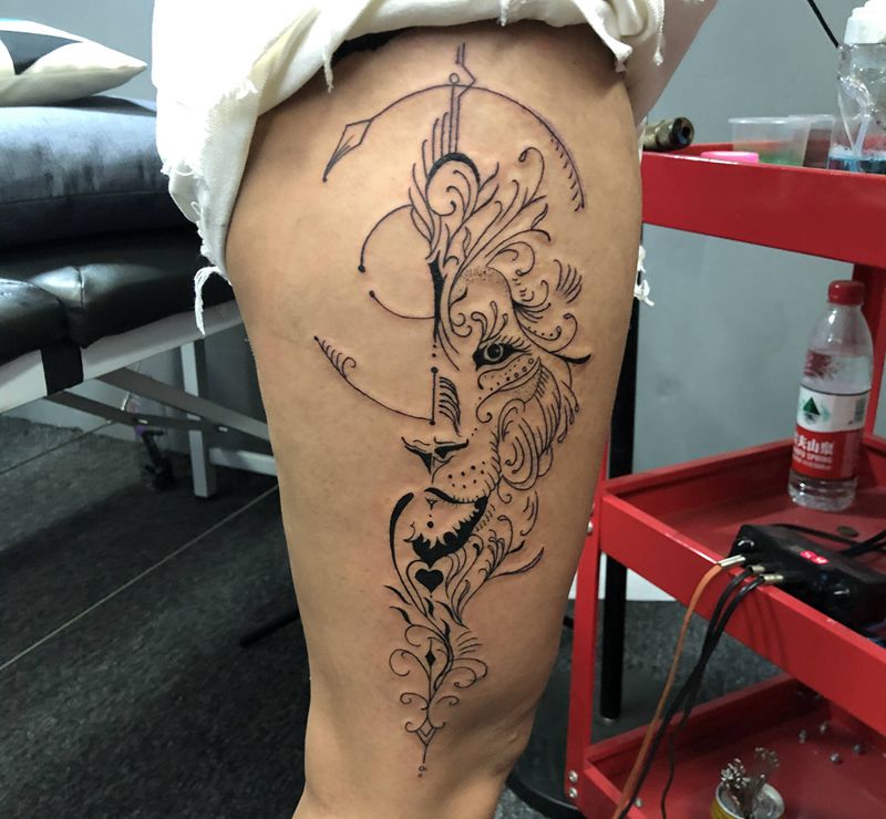 当前位置: 首页 >广西南宁市纹身店-墨功刺青纹身图案>线条狮纹身图片_腿部几何纹身图案