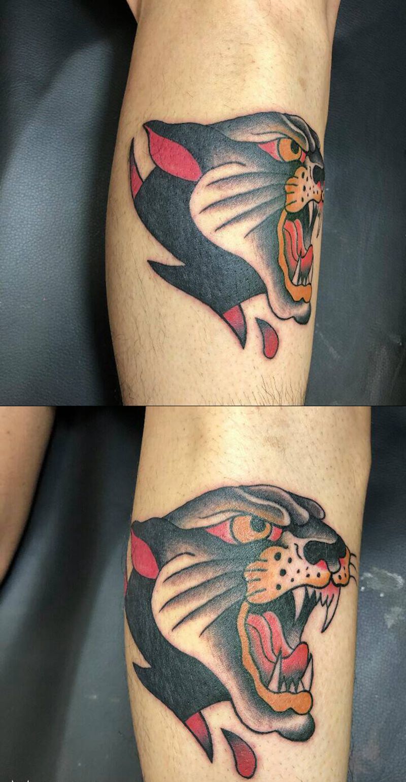 当前位置: 首页 >广西南宁市纹身店-墨功刺青纹身图案>黑豹纹身图片_腿部Old School纹身图案