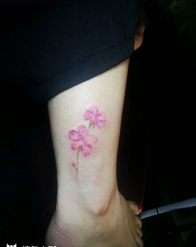 当前位置: 首页 >广西南宁市纹身店-腾刺青纹身图案>小清新花花纹身图片_腿部清新写实植物静物成品纹身图案