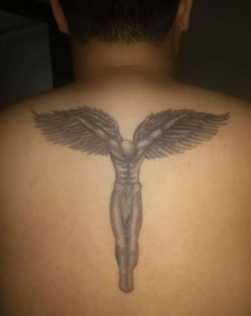 堕落天使纹身图片_背部欧美写实人物宗教成品纹身图案