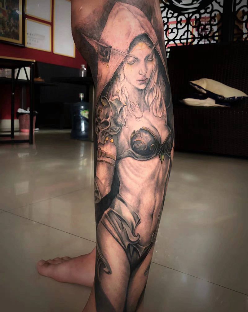 • T网红王老大花腿龙纹身图片_腿部新传统纹身图案