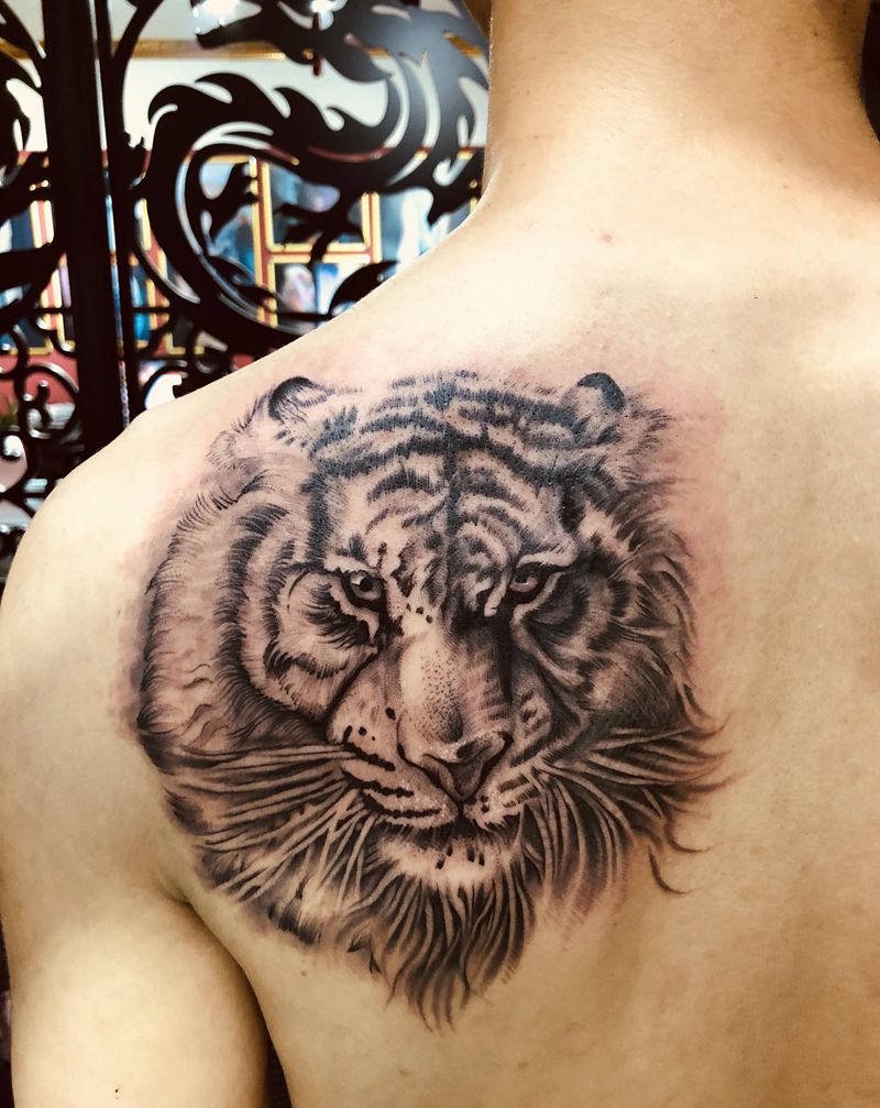 当前位置: 首页 >广西南宁市纹身店-潮刺青纹身图案>老虎纹身图片_背部欧美写实纹身图案