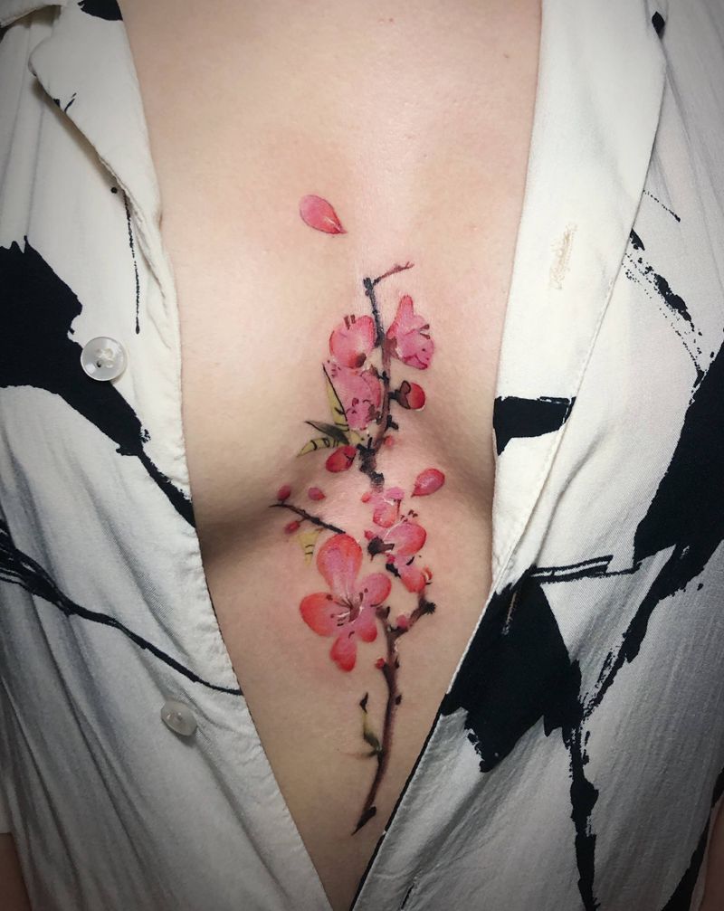 当前位置: 首页 >广西南宁市纹身店-潮刺青纹身图案>桃花纹身图片_胸部腹部水彩纹身图案