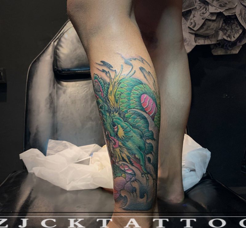 当前位置: 首页 >广东省揭阳市纹身店-战匠刺客纹身馆纹身图案>新传统(龙)纹身图片_腿部纹身图案