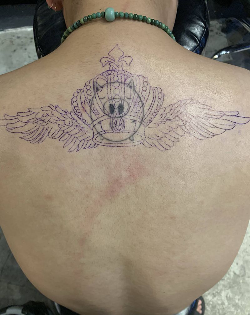 当前位置: 首页 >广东省揭阳市纹身店-战匠刺客纹身馆纹身图案>皇冠遮盖猪头纹身图片_颈部纹身图案