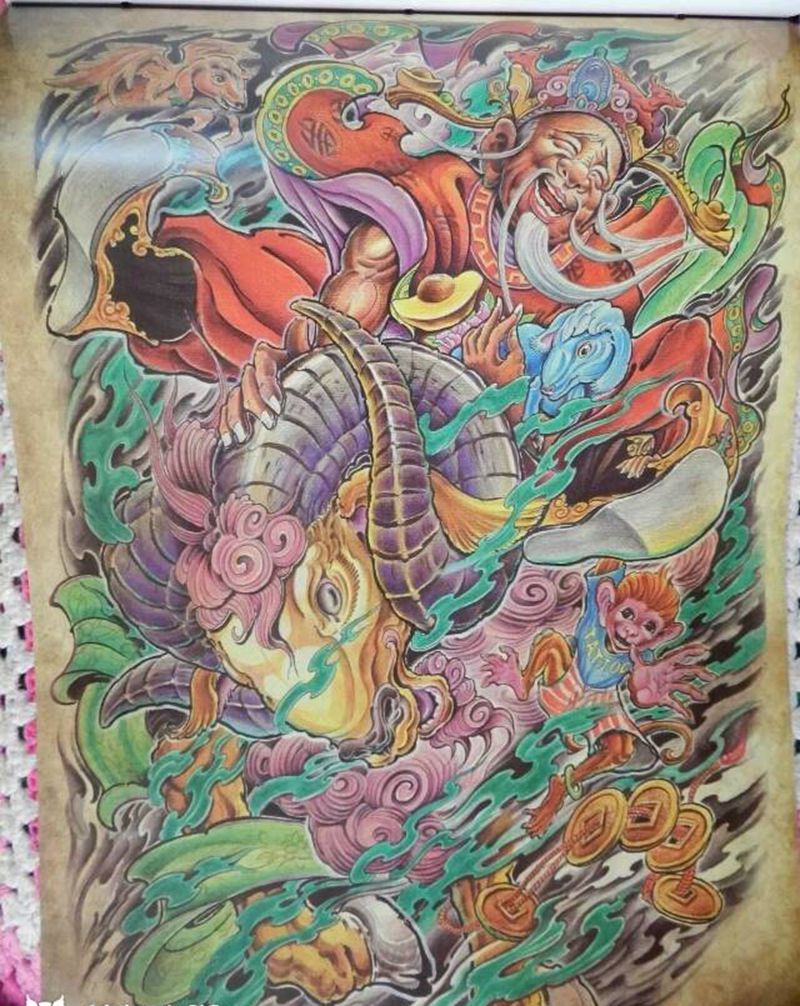 • T云龙九郎纹身图片_背部老传统云龙九郎纹身图案