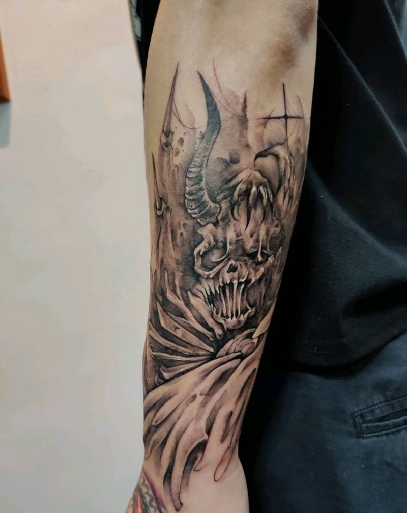 堕落天使纹身图片_手臂点刺欧美写实纹身图案
