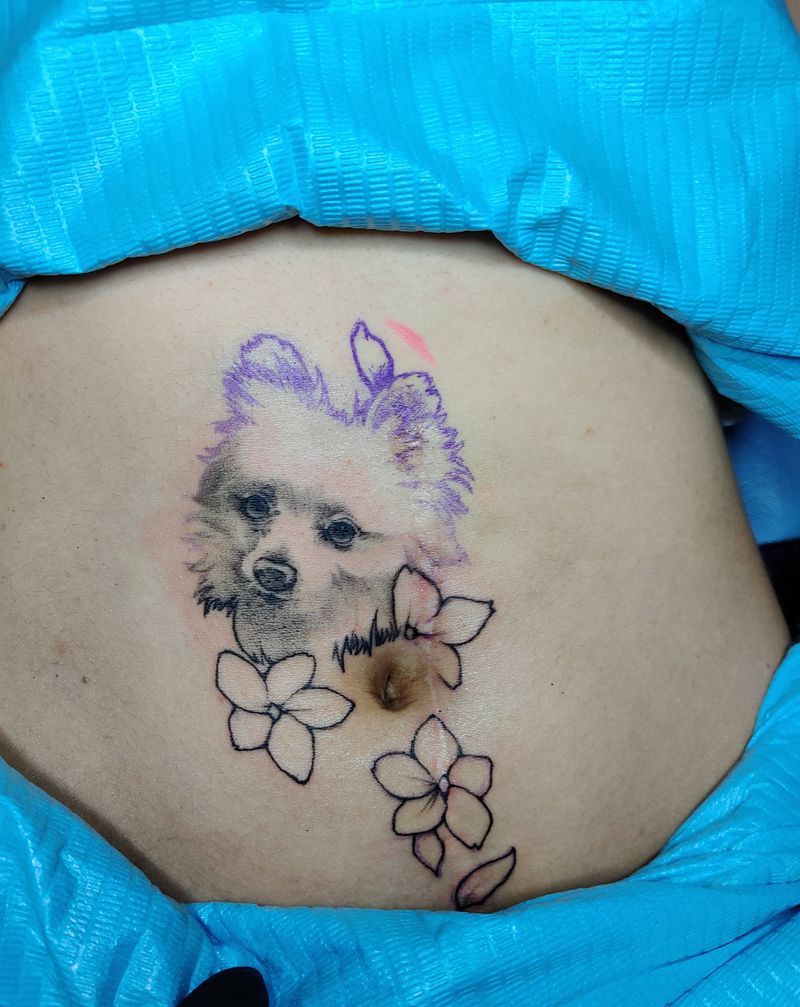 当前位置: 首页 >广东省揭阳市纹身店-畏·刺青RESPECT TATTOO纹身图案>#博美犬纹身图片_腹部New School欧美写实遮盖纹身图案