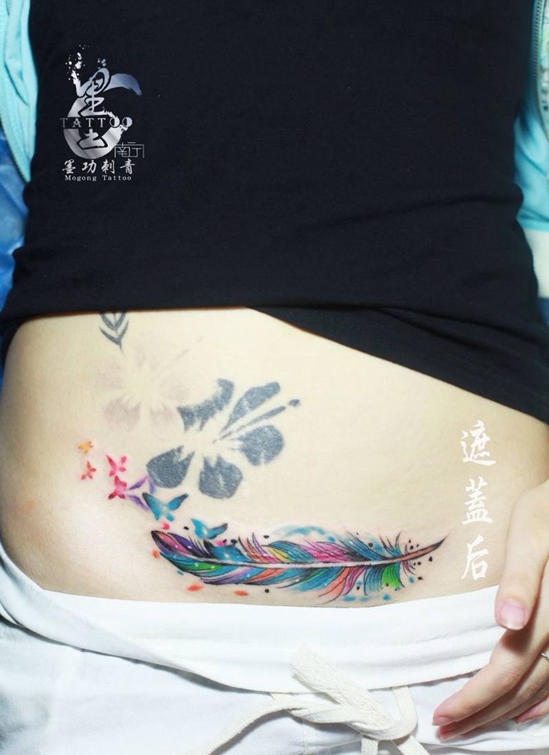 • 时尚性感的腹部莲花纹身图案