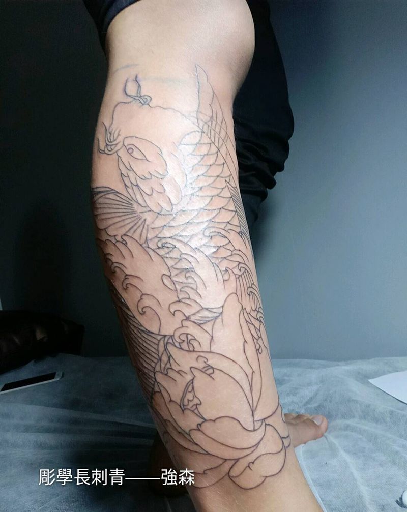 当前位置: 首页 >广西南宁市纹身店-彫學長刺青纹身图案>小腿鲤鱼割线纹身图片