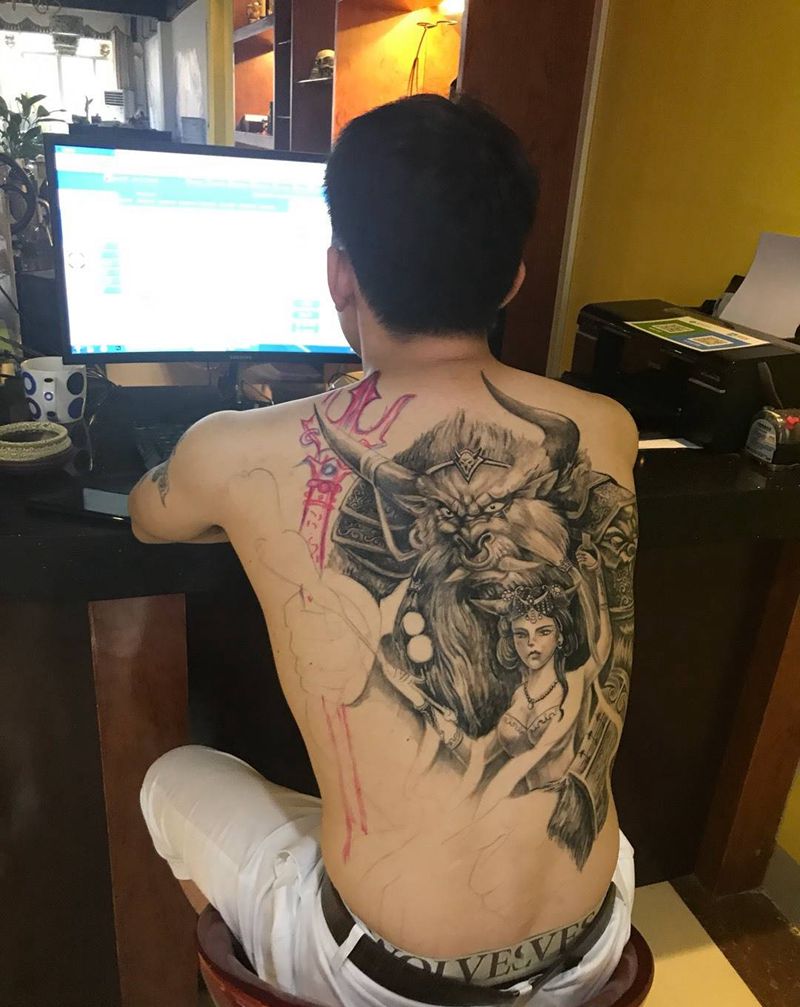 当前位置: 首页 >广西南宁市纹身店-墨功刺青纹身图案>牛魔王与铁扇公主纹身图片
