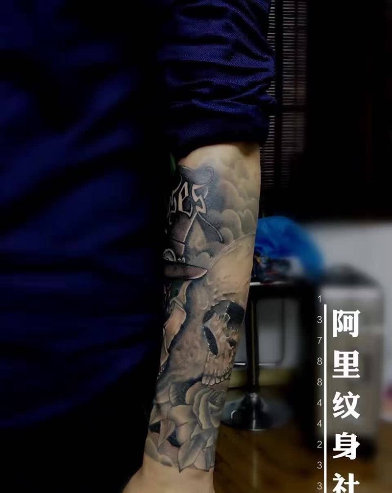 骷髅纹身图片_阿里成品欧美写实纹身图案