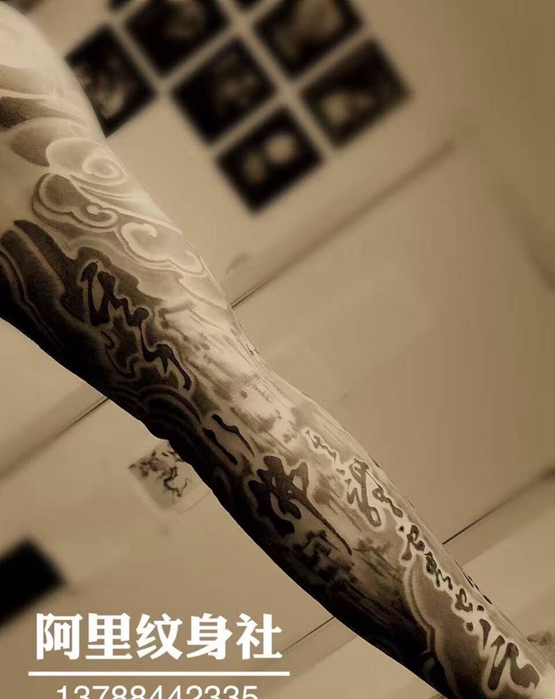 当前位置: 首页 >广西柳州市纹身店-阿里纹身社纹身图案>书法与图腾纹身图片_成品原创传统国画图腾阿里手臂纹身图案