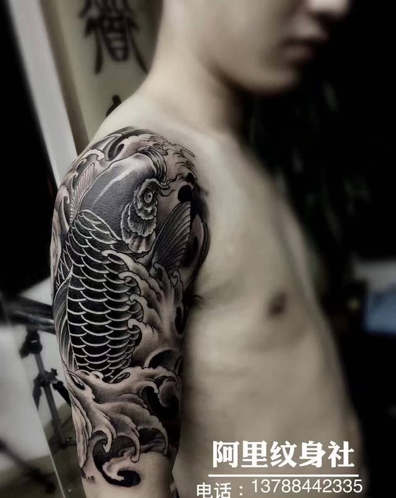 鲤鱼纹身图片_成品手臂传统动物阿里纹身图案