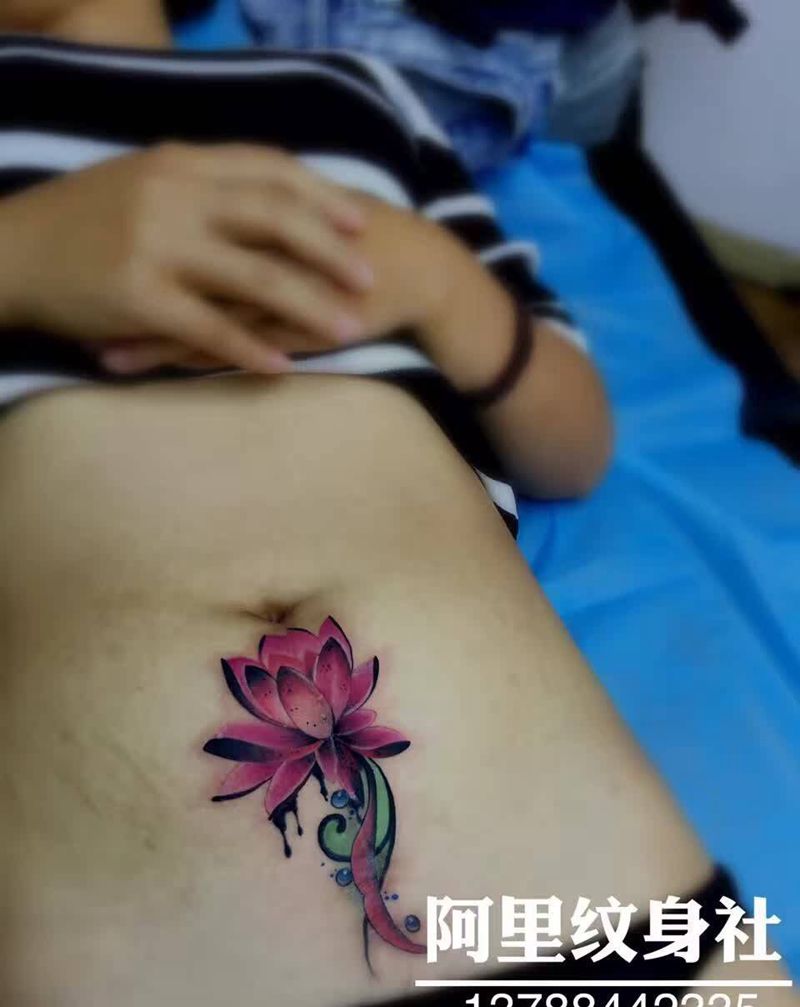 • 时尚性感的腹部莲花纹身图案