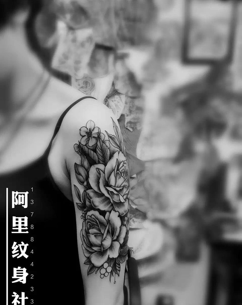 花纹身图片_阿里成品手臂植物纹身图案