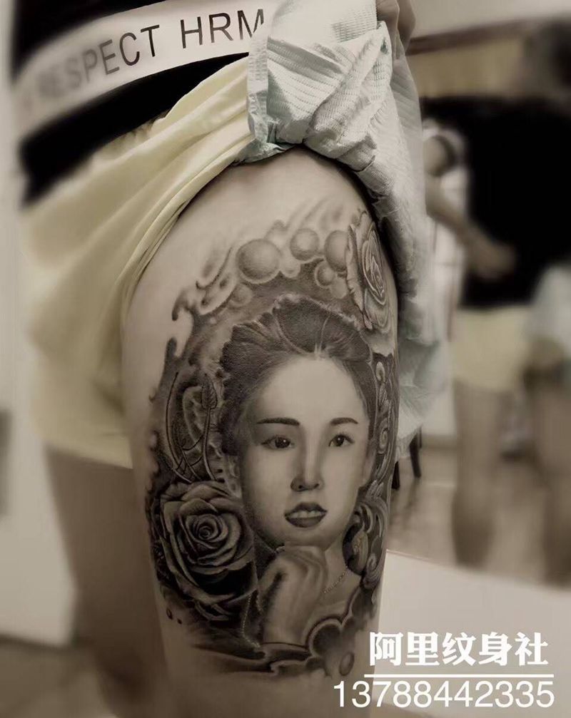 当前位置: 首页 >广西柳州市纹身店-阿里纹身社纹身图案>爱人纹身图片_阿里人物写实原创植物肖像成品腿部纹身图案