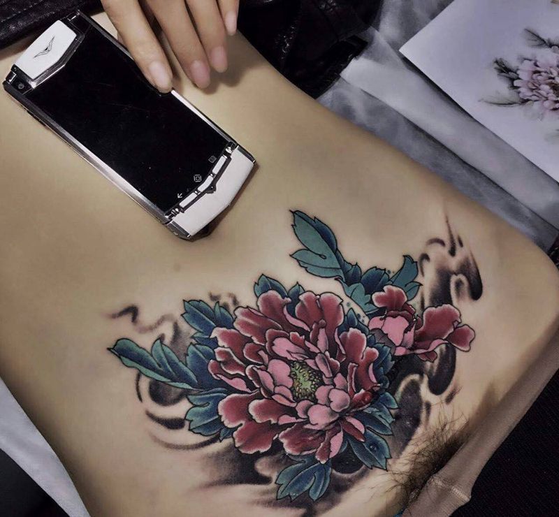当前位置: 首页 >广西柳州市纹身店-阿里纹身社纹身图案>牡丹花盖疤纹身图片