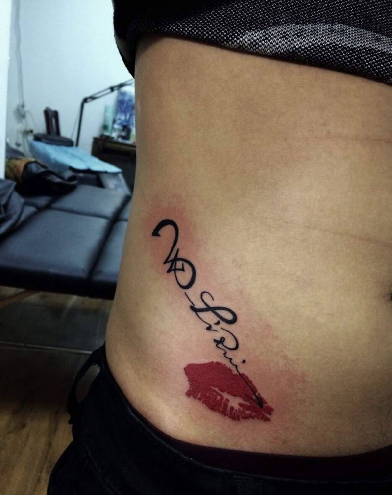• T关于私处得爱!纹身图片_成品腹部清新字符图腾纹身图案
