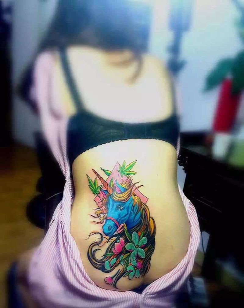 独角兽纹身图片_成品腰部欧美动物纹身图案
