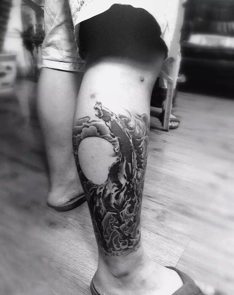 • T网红王老大花腿龙纹身图片_腿部新传统纹身图案