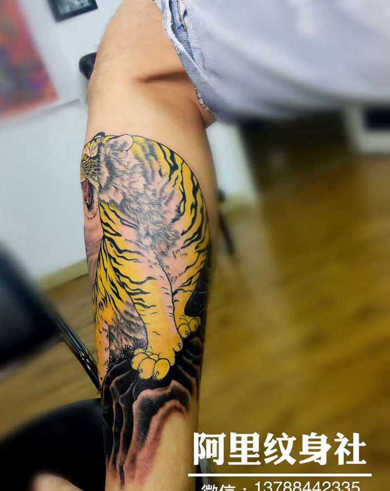 当前位置: 首页 >广西柳州市纹身店-阿里纹身社纹身图案>虎纹身图片_阿里成品腿部传统动物国画原创纹身图案