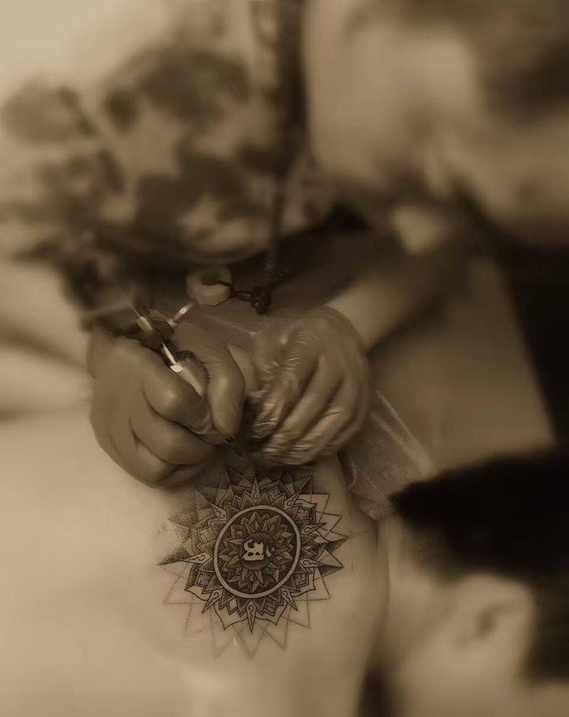 当前位置: 首页 >广西柳州市纹身店-阿里纹身社纹身图案>梵花点刺纹身图片_阿里成品几何图腾清新背部原创纹身图案