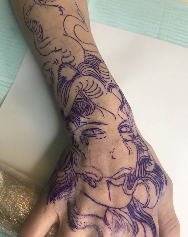 美杜莎纹身图片_手部欧美写实纹身图案
