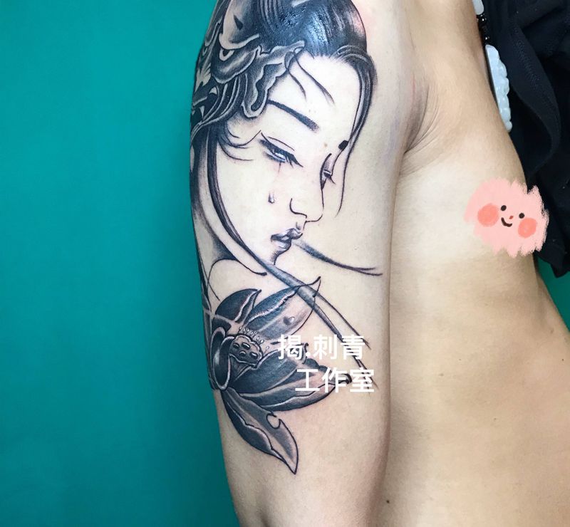 艺伎纹身图片_手臂老传统纹身图案