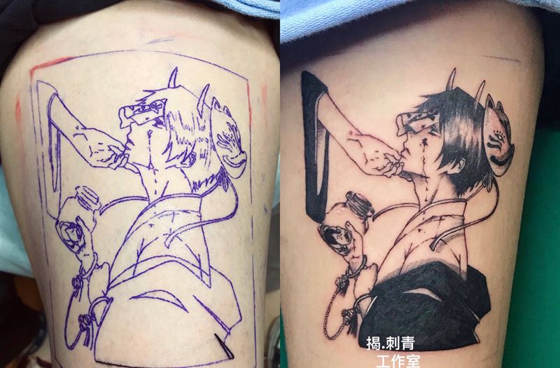 黑灰满背纹身图案