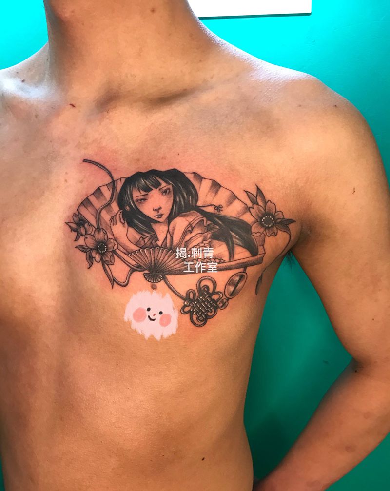 艺伎纹身图片_胸部老传统纹身图案