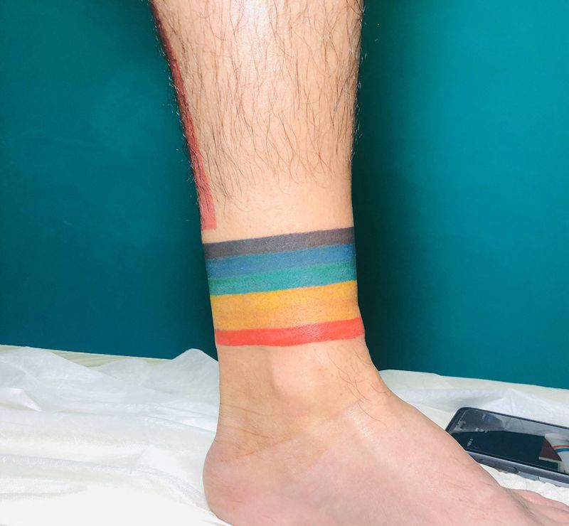 彩虹脚环纹身图片_脚部水彩纹身图案