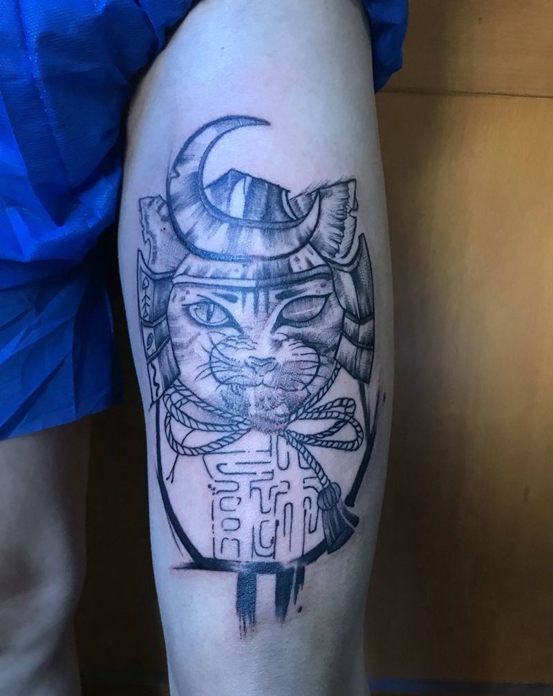 当前位置: 首页 >广西南宁市纹身店-揭 ·刺青纹身图案>猫纹身图片_腿部点刺新传统纹身图案