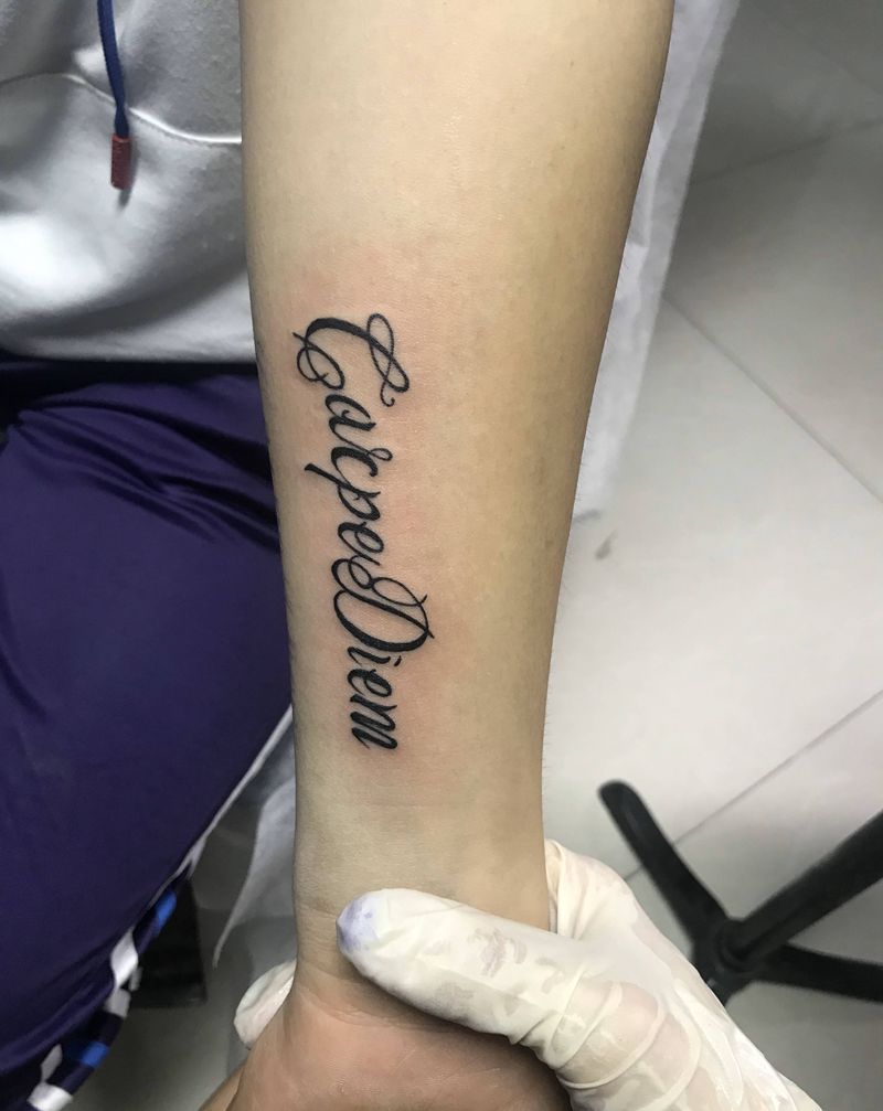 及时行乐纹身图片_手臂花体字纹身图案