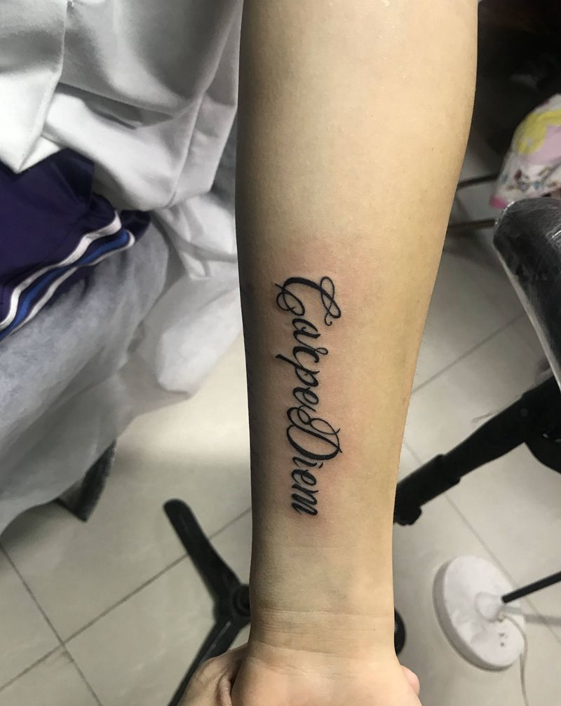 及时行乐纹身图片_手臂花体字纹身图案