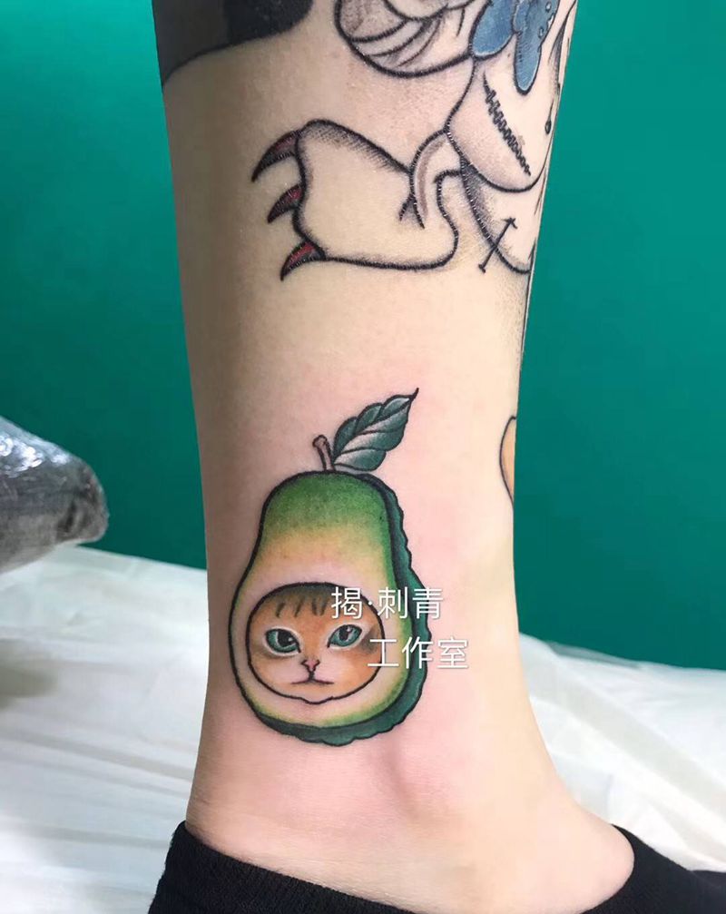 当前位置: 首页 >广西南宁市纹身店-揭 ·刺青纹身图案>水果猫咪纹身图片_手臂腿部New School纹身图案