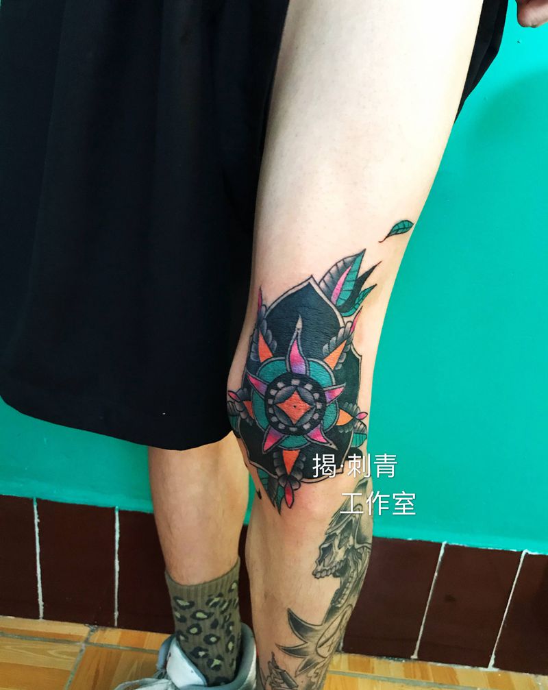 当前位置: 首页 >广西南宁市纹身店-揭 ·刺青纹身图案>膝盖印花纹身图片_腿部New School水彩纹身图案